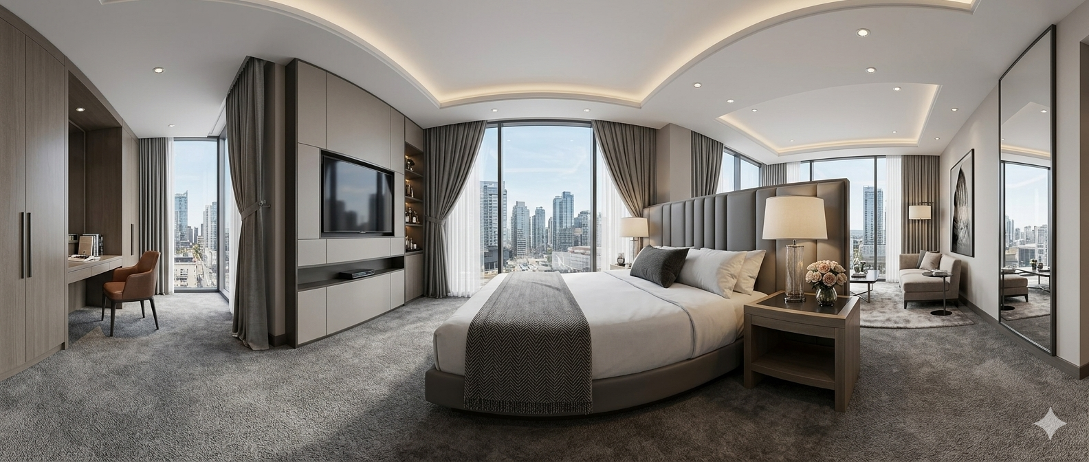 Drag or swipe inside each room to look around a full 360°. Use the buttons below to move between spaces.