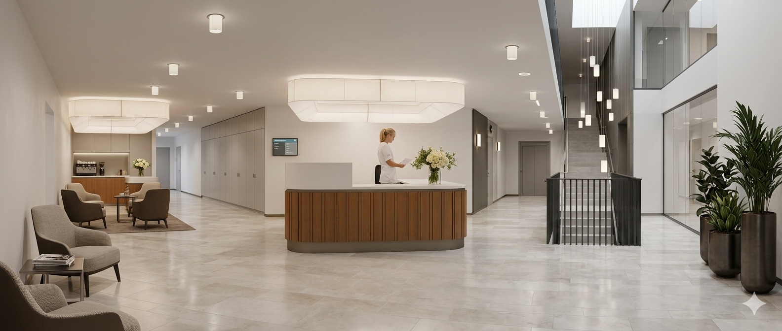 The arrival experience sets the tone — a calm, considered welcome into a space designed for recovery.